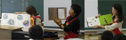 図書館ボランティア「ひまわり」の方が読み聞かせをしてくださっています。