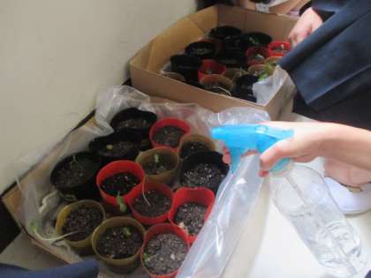 3年生が大切に水やりをしているのは、ひまわり・マリーゴールド・ホウセンカです。