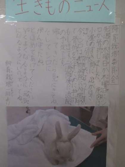 飼育栽培委員会の子が、シロの足の異常を見つけてくれました。