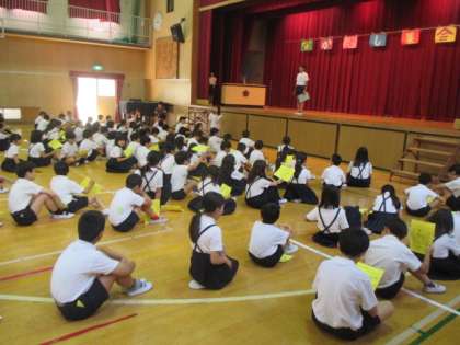 写真は開会式です。お行儀よく座っていますが、もうこれから遊びたくてうずうずしているのをおさえているんです!