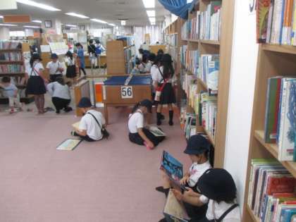 子どもたちも、一般の方にまじって読書をしたり本探しをしたりして、図書館のたのしさを味わっていました。