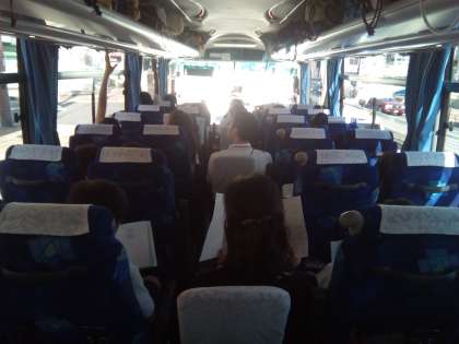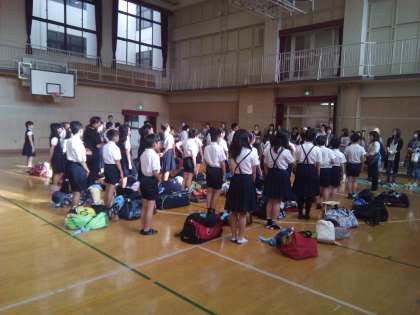 6年生が修学旅行に出発しました。志摩スペイン村へ行きます。49人全員が元気に出発しました。