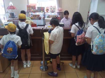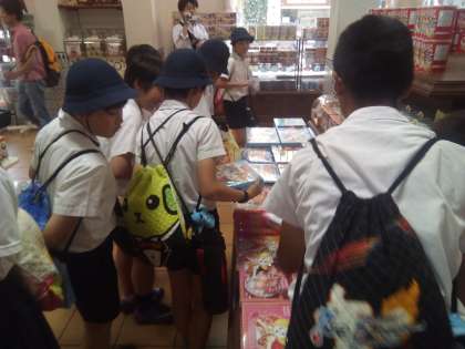 満足するまで、たっぷり遊びました。お土産を買って、ホテルへ出発。土産物屋で内代小学校と一緒になりました。昨年の林間でも出会っているので、ビックリ。