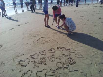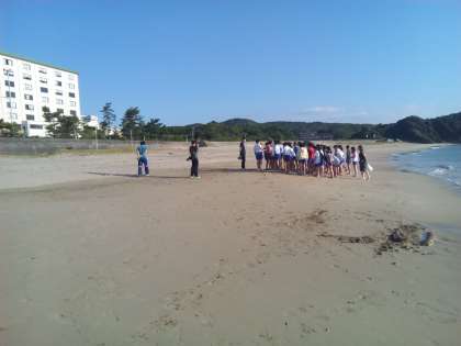 浜辺で