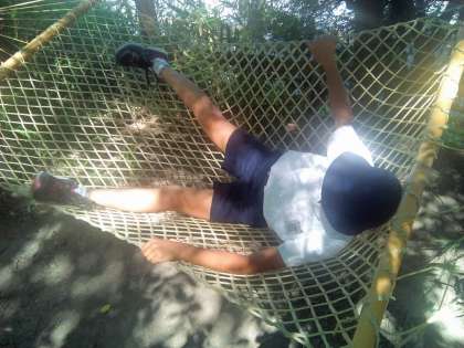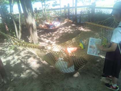 ハンモックで遊んでいる班もあります。楽しそうです。