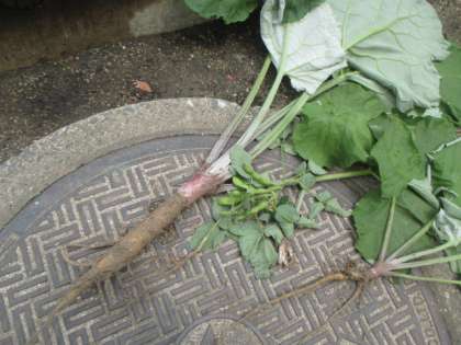 立派な葉をつけているのはゴボウです。