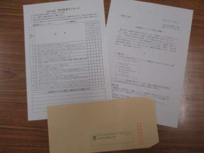 保護者の皆さんには、今日、「学校教育アンケート」を家庭数で配布しています。