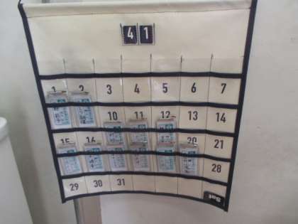 子どもたちは、登校するとここから名札を取り出して着けます。