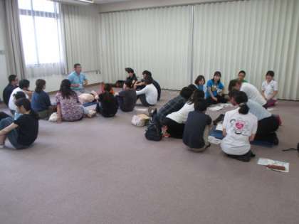 消防振興協会の方にお越しいただいて、応急手当てを学ぶ講習会を行いました。