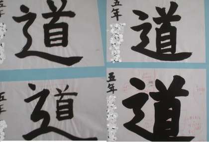 「道」という字を、自分なりに手本を見て書いたのが下段、その後に字の特徴をとらえて改めて書いたのが上段です。