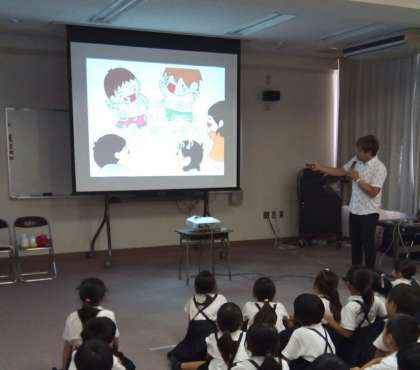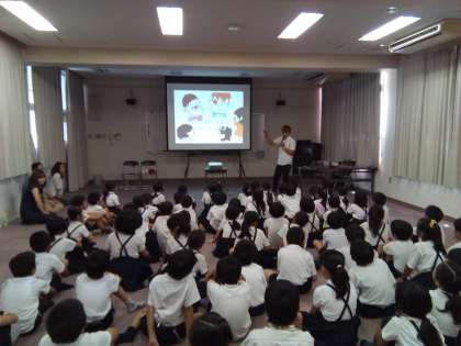 サンフェイスの皆さんにお越しいただき、発達障がいについてたくさんのことを教えていただきました。「視覚的」「具体的」「肯定的」に伝えることで、発達障がいのある人はもちろんのこと、全ての人にとって生活しやすい世の中になるという3年生にもわかりやすい内容でした。
