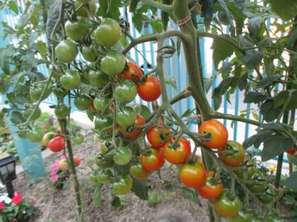 玄関わきの「農園」は、今、ミニトマトがたくさん実っています。
