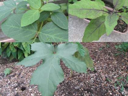3種類の植物の葉です。1年生と2年生の学習園で育てています。