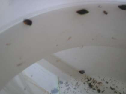 (写真上)生まれたてのメダカは、とっても小さいので別の水槽で飼育します。