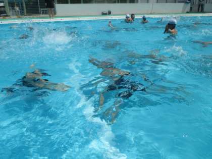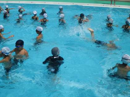 中学年になると、基本的なクロールや平泳ぎの動きも練習します。