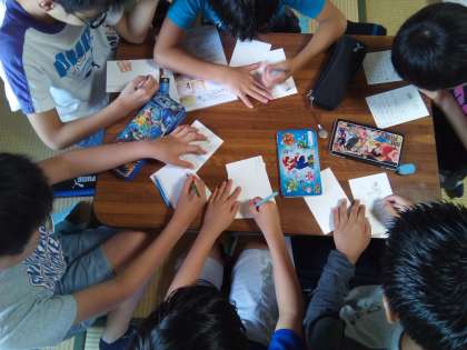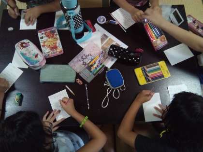 現地から、家族や親戚の方にはがきを書いています。届くのを楽しみにしていてください。
