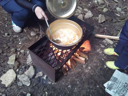 一つの班だけが、いまだに点火できません。他の班はカレーの調理を始めています。無事に点火できるのでしょうか?