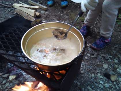 全ての班が点火に成功。これで全員が、カレーづくりを始めました。