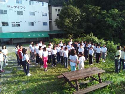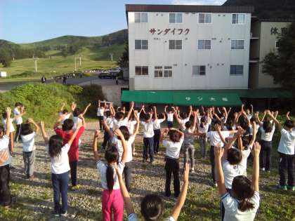 ラジオ体操と講話で、気持ちと身体を起こします。