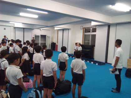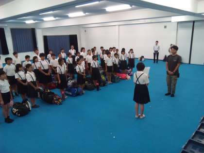 楽しかったハチ高原ともお別れです。林間学習を振り返るとともに、三日間お世話になったホテル「サンダイフク」のスタッフさんにお礼を言います。本当にありがとうございました。