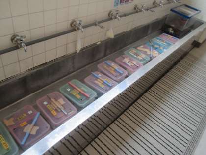 ご覧のように、夏休み中、教室の生き物たちは職員室前の水道に集められています。2学期に子どもたちと会えるのを待っています。