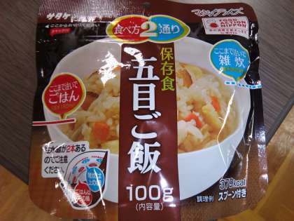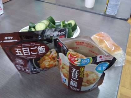 朝ご飯は、保存食の五目ご飯です。昨日の防災クイズで学んだことを思い出して、美味しくいただきました。