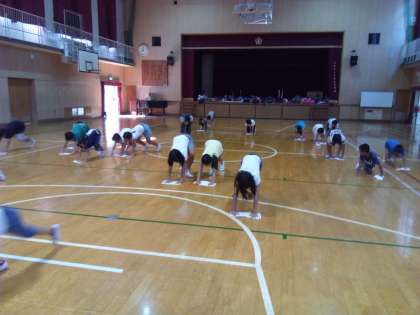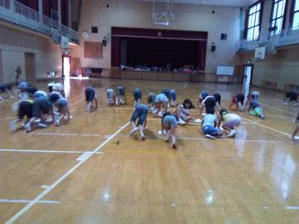 昨晩みんなで一緒に寝た体育館を、みんなで協力して綺麗にしました。