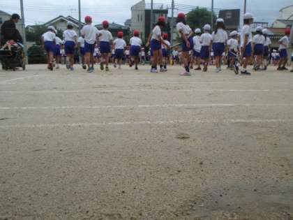 今朝の雨で、あんなにびしょびしょだった運動場ですが、3時間目には運動場で練習できるほどになっていました!