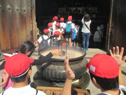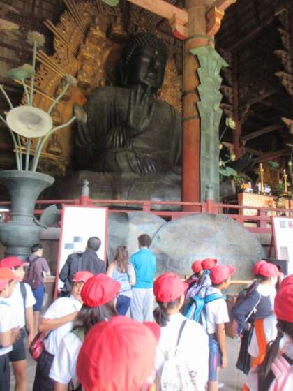 6年生は社会科で学習しているところでもあります。さあ、だれが建立したのか覚えているかな?5年生はまだ学習と結び付けることはできなくても、そのすごさを感じていました。