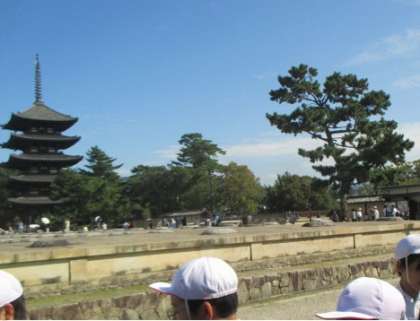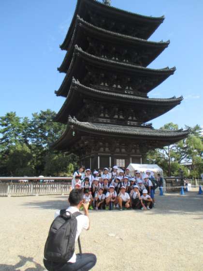帰り道は、興福寺の美しい搭を見て帰路につきますが、もうお弁当もおやつも食べてしまったからか暑さと歩き疲れのせいなのか、関心はいま一つ…?