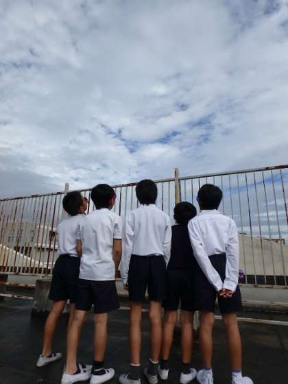 屋上で空を見上げて、何をしているのでしょう? UFO探し?それなら子どもの頃本気でやってたなぁ…