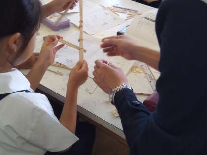 土曜授業で青少年指導員さんから、割り箸鉄砲の作り方を教えていただいてます。なかなか苦労しています。