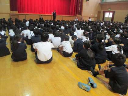 今日は、休み時間に不審者が侵入した想定で避難しました。
