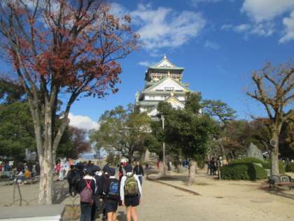 午後は大阪城の天守閣を見学した帰り際に、大阪城に残る戦争の傷跡を巡りました。