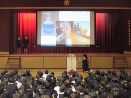 保健委員の子どもたちが、手の洗い方を実演してくれました。
