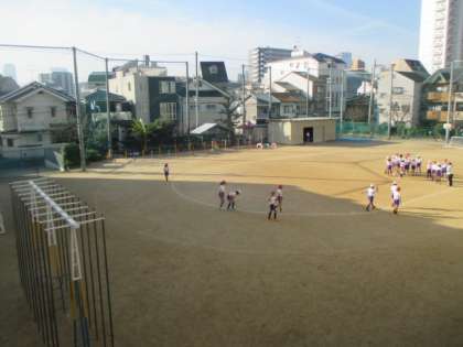 体育をしているのは4年生です。寒さに負けずしっかり体を動かしています。