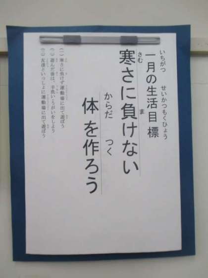 今月は「寒さに負けない体を作ろう」です。