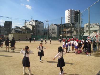 今日の休み時間の運動場は、たくさんの子どもたちが元気に遊んでいました。