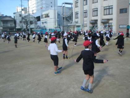 今週は寒波の襲来で空気はキンキンに冷え込んでいますが、子どもたちは元気にピョンピョンと跳んでいました。
