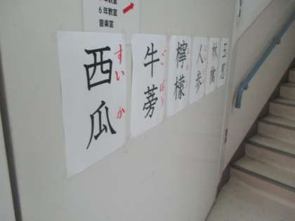 給食の献立とも関連付けているそうで、今日のメニューの「かぼちゃプリン」にちなんで、「西瓜」が張り出されました