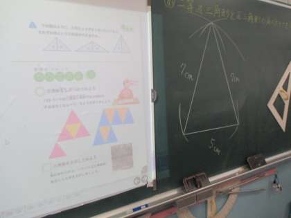 今日は、3年生が1学級を2分割して、三角形の学習を行っていました。
