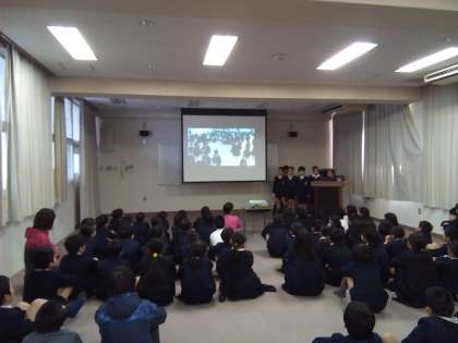 来年度から委員会活動に初めて参加する4年生のために、5年生が各委員会の活動内容をパワーポイントを使って説明しました。
