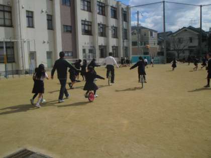 ドッジボールやバスケットボール、一輪車など、いろんな遊びを楽しんでいます。