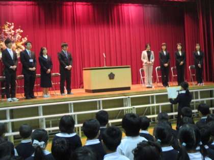 引き続き行われた始業式では、4月から転入した7人のお友だちの紹介がありました。