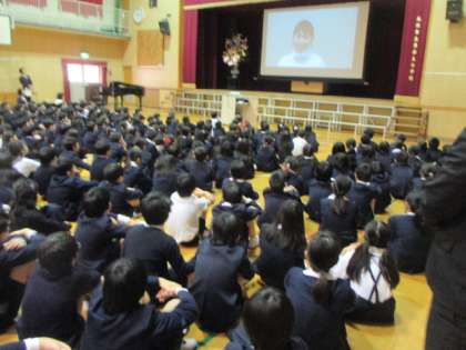 そして、去られた先生方はビデオレターで子どもたちにあいさつをしました。