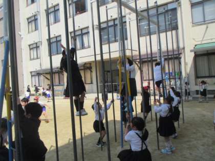 写真を撮っていたら、「先生、のぼって!」とかわいい1年生にお願いされて登ってみせると「すご〜い!」と感動されました(^o^)