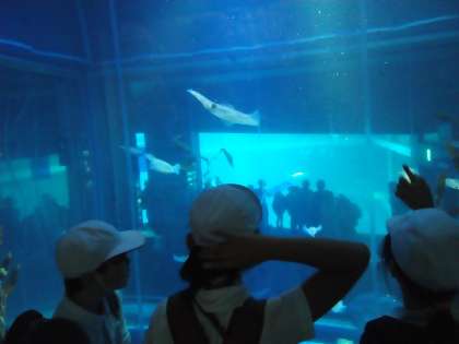 子どもたちは、一つ一つに歓声をあげながら、興味を持って見ています。子どもたちの好奇心は旺盛です。中には、イカが泳いでるのを見て、「今日は『くら寿司』へ行こ」とつぶやいている子どももいます。よっぽど美味しそうに泳いでいたのでしよう。今晩、食べれるといいね。