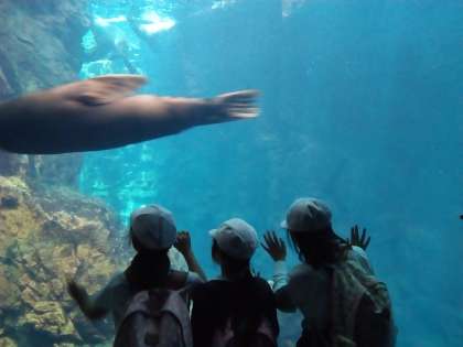 海遊館は、大きな水槽にアザラシやラッコ、さまざまな魚がいっぱい。