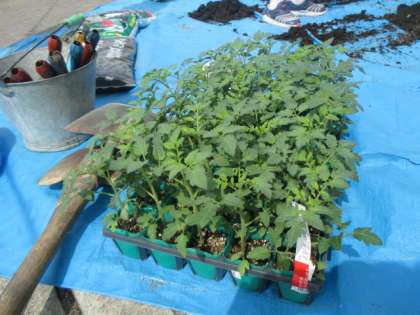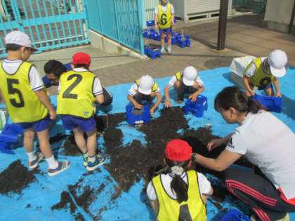 今日は、2年生がミニトマトとサツマイモの苗を植えました。
