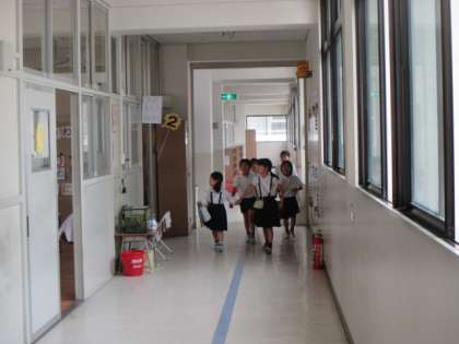 2年生が、1年生といっしょに学校の中を探検しました。